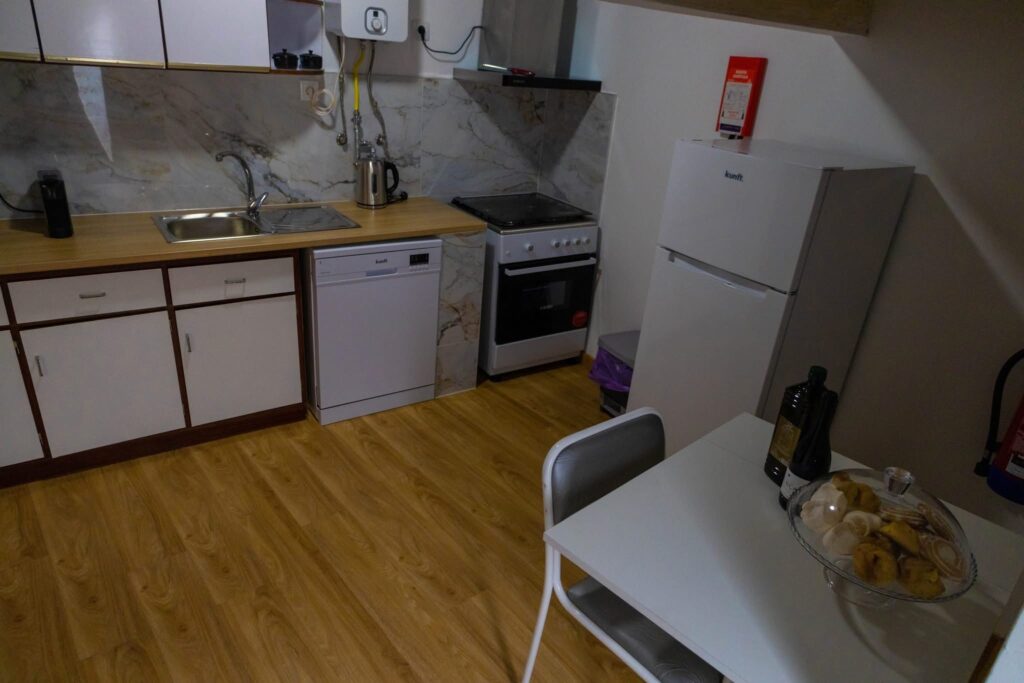 As áreas comuns consistem numa sala e cozinha todas apetrechadas, com zona para refeições, um corredor que percorre os encantos de toda a casa e um pequeno pátio no exterior.