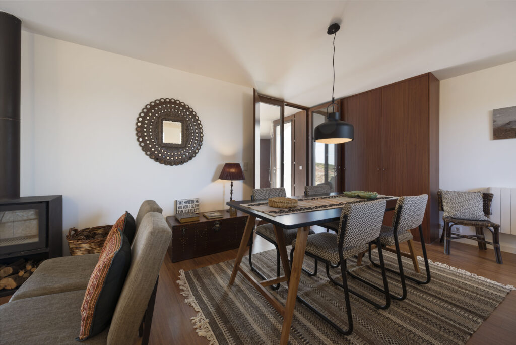 - Não tem ar condicionado, mas aquecimento elétrico e salamandra para o dias mais frios e ventilação de tecto para arrefecimento durante o verão.