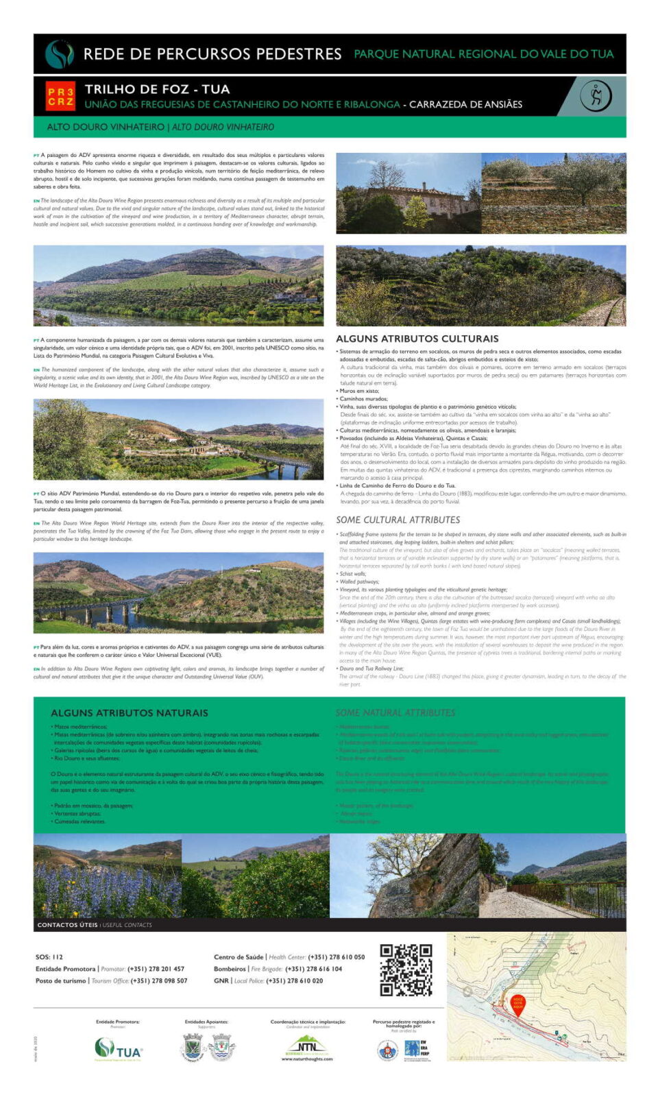 O “Trilho de Foz-Tua” é um percurso pedestre linear que estabelece relações de proximidade com o Tua e o Douro – dois rios e duas linhas de caminho de ferro históricas que estruturam as magníficas paisagens do Alto Douro Vinhateiro (ADV), classificado como Património Mundial da UNESCO, do Parque Natural Regional do Vale do Tua (PNRVT) e da Região Demarcada do Douro (RDD).