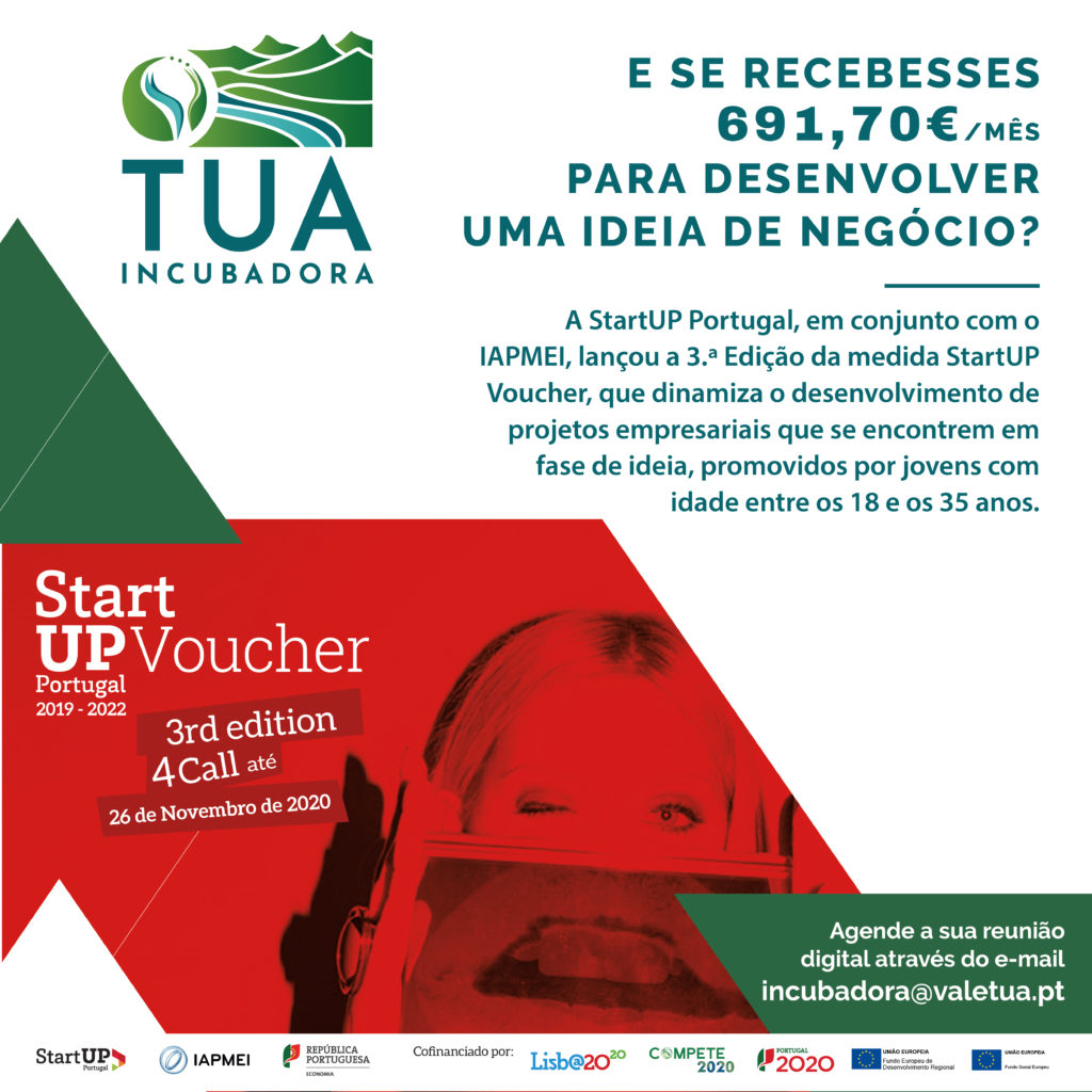 Recordamos que o StartUP Voucher atribui aos jovens cuja candidatura for aprovada uma bolsa mensal de 691,70€ para o desenvolvimento do respetivo projeto, por um período máximo de 12 meses. Podem ser atribuídas até um máximo de duas bolsas por projeto empresarial; faculta a esses jovens o acesso a uma rede de mentores que forneçam orientação aos promotores e fazem o acompanhamento, passo a passo, do projeto.
